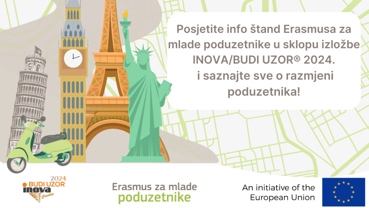 Zanima vas kako pokrenuti vlastiti posao i što vas čeka u svijetu poduzetništva? Već imate tvrtku, ali tražite nove ideje i svježe perspektive? Odgovore možete pronaći na međunarodnoj izložbi INOVA/BUDI UZOR® 2024., gdje će se od 16. do 18. listopada na Zagrebačkom velesajmu predstavljati program Erasmus za mlade poduzetnike (Erasmus for Young Entrepreneurs – EYE). Izložba slovi za jedan od najvažnijih događaja za poduzetnike u Hrvatskoj, nudi priliku za edukaciju, umrežavanje i istraživanje novih poslovnih mogućnosti, organizirana je u sklopu projekta Europske poduzetničke mreže, a suorganizator je TERA Tehnopolis.